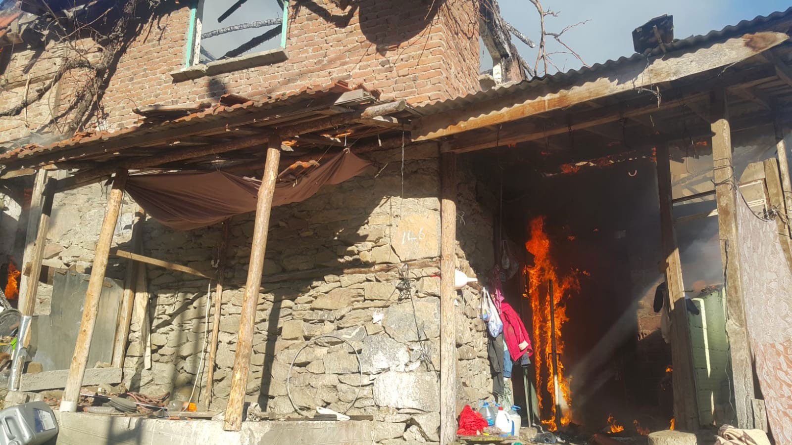 Olay yerine gelen itfaiye ekiplerinin müdahalesiyle yangın köydeki diğer evlere sıçramadan söndürüldü.