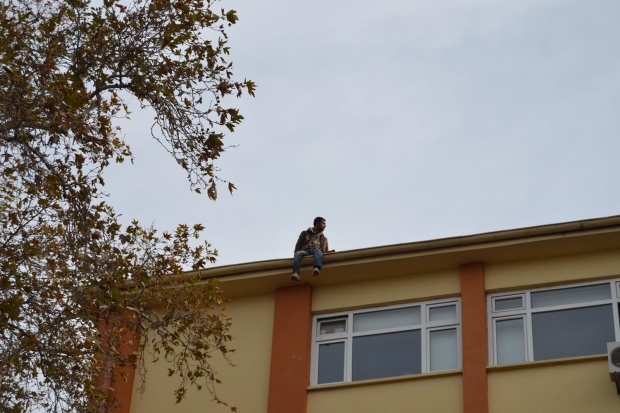 Gemlik Kaymakamlığı’nın bulunduğu 5 katlı binanın çatısına çıkan ve işsiz olduğu öğrenilen evli ve 2 çocuk babası Coskun D., çocuklarına çöpten ekmek toplayarak baktığını öne sürerek, “6 aydan beri vakıftan bir lira yardım alamadım. Her geldiğimde görevliler bana bağırıp çağırıyor. Kapıdan kovuyor. Suriyelilere yardım edeceğinize bize yardım edin” diye ağladı.