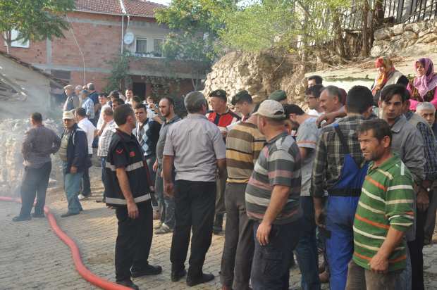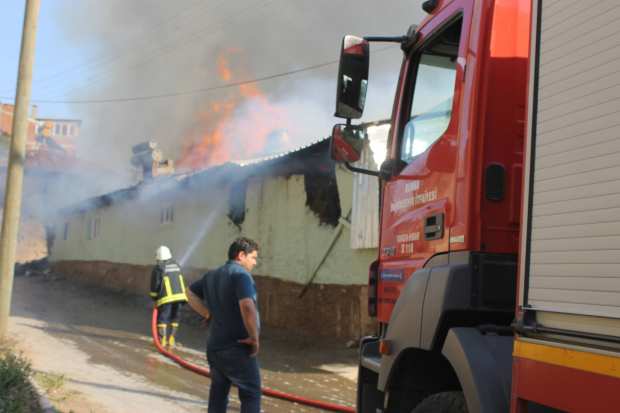 Yoğun çabalar sonucunda diğer evlere sıçramadan kontrol altına alınan yangında ev, ahır ve samanlık küle döndü.