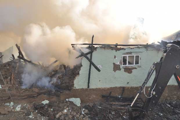 Yangında büyük bölümü yıkılan ahşap ev, tehlike arz etmesi nedeniyle iş makineleri tarafından tamamen yıkıldı. Mahalle sakinleri ise yangın söndürme çalışmalarını merakla izlediler.