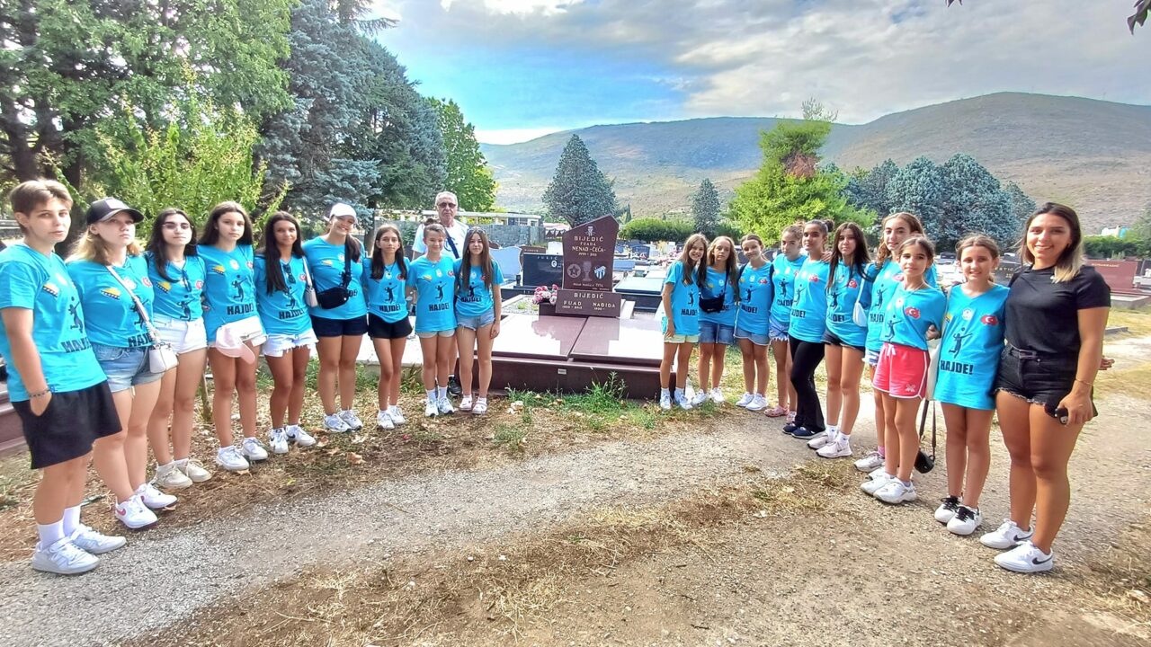 Bosna-Hersek’te kampta olan ve Bursa voleybolunun Türkiye’ye armağan ettiği çalıştırıcı Emin İmen’le 14-16 yaş grubundaki kız voleybolcular, Bursa’ya dönmeden önce İmparator Biyediç’in mezarını ziyaret ettiler.