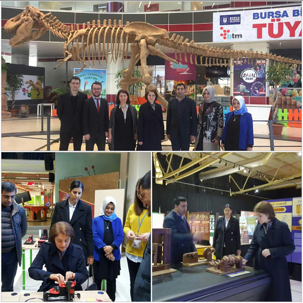 Paylaşımlarda ayrıntılı bilgi yok, ama fotoğraflardan Vali’nin eşi Ayşe Küçük’ün ziyaretinde BTM Müdürü Murat Bakan’dan bilgi alıp bazı deneylere katıldığını ve dinozorlar sergisini gezdiğini anladık.
