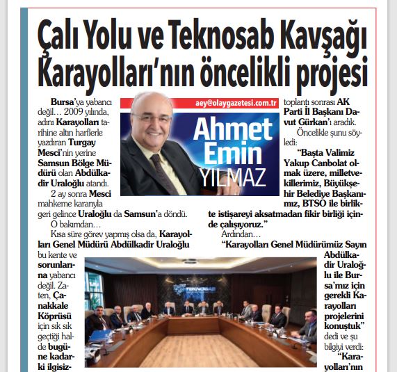 Karayolları Genel Müdürü Abdülkadir Uraloğlu 25 Kasım’da Bursa’ya geldiğinde, şubat-mart gibi ilk fabrikaların faaliyete geçmelerinin beklendiği TEKNOSAB’da toplantıya katıldı.