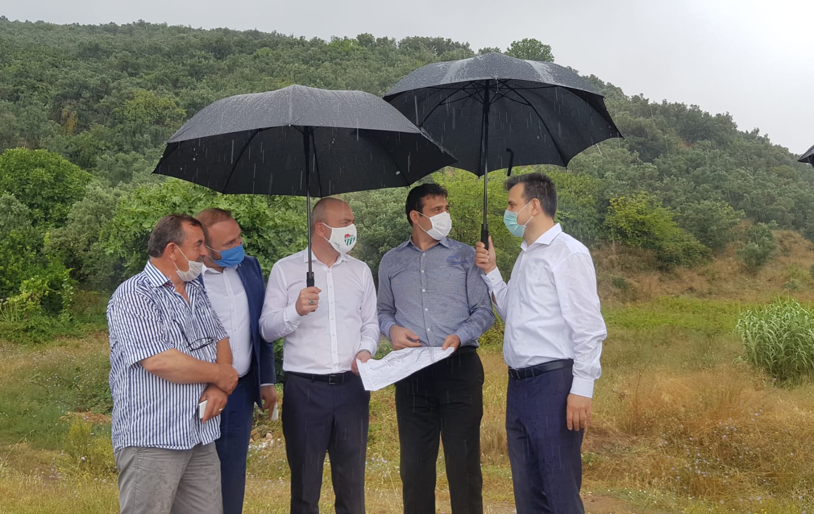 Karayolları 14. Bölge Müdürü Ömer Güzel, kazaların yaşandığı ve ters dönüş nedeniyle riski yüksek olan kavşak için hazırladıkları projeyi AK Parti Bursa milletvekilleri Dr. Mustafa Esgin ve Zafer Işık’la AK Parti Gemlik İlçe Başkanı Şamil Yiğit’e yerinde ve yağmur altında anlattı.
