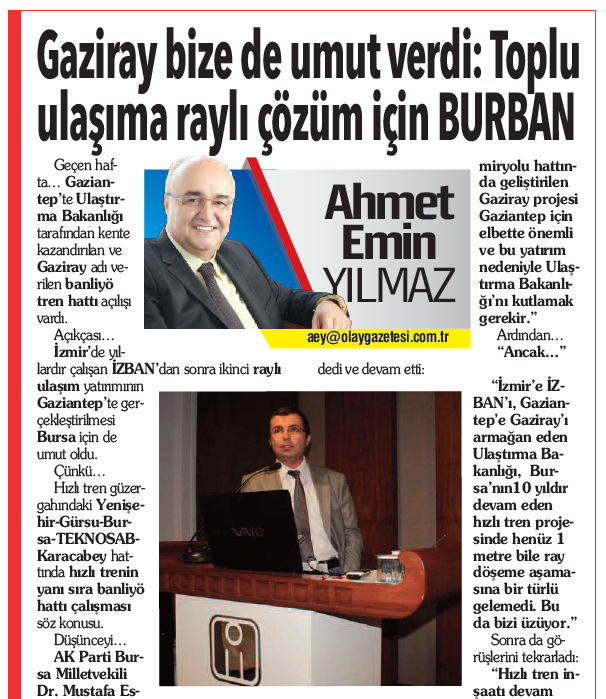 Gerçi… Hızlı tren inşaatı henüz bitmedi, ama hızlı tren hattında banliyö treni çalıştırılması için projeler üretiliyor. Bu projelere, İMO Ulaşım Komisyonu Başkanı M. Tözün Bingöl’den Çalı-Hasanağa-Kayapa hattıyla Mudanya ve Gemlik hatları eklenmesi önerisi geldi.