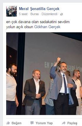 Gökhan Gerçek’in 1 Kasım için de SP Adayı olmasının ardından Meral Gerçek sosyal medyada mesaj yayınlayıp siyasetçi eşine şöyle seslendi: