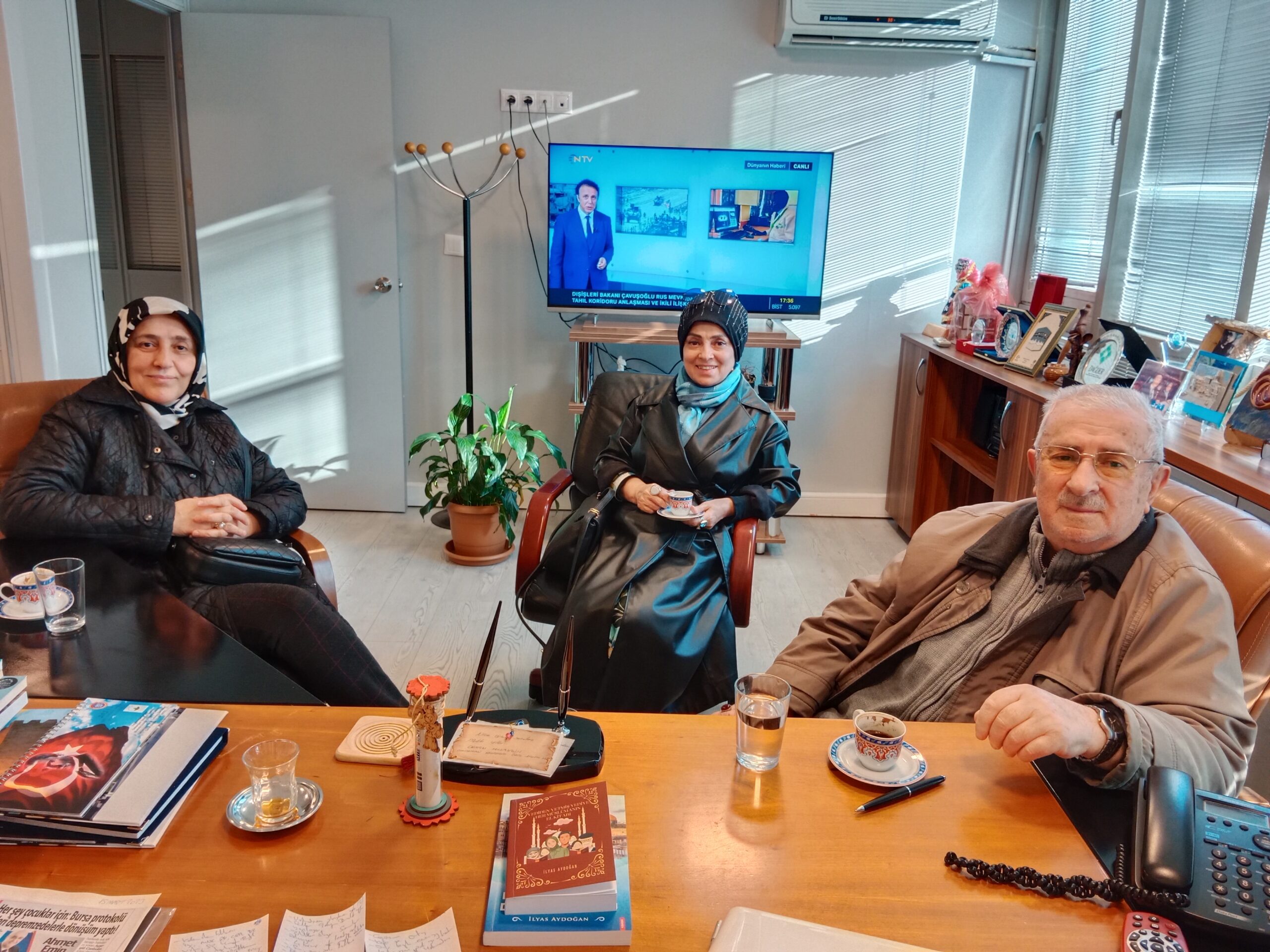 Kızları Macide Gazioğlu Kükürtlü Ortaokulu Din Kültürü ve Ahlak Bilgisi Öğretmeni Süheyla Aydoğan ve Zekai Gümüşdiş Ortaokulu İngilizce Öğretmeni Yasemin Çınar ile ziyaretimize geldiğinde Kudüs-ü Şerif’in Dünü ve Bugünü adlı kitabını imzaladı.
