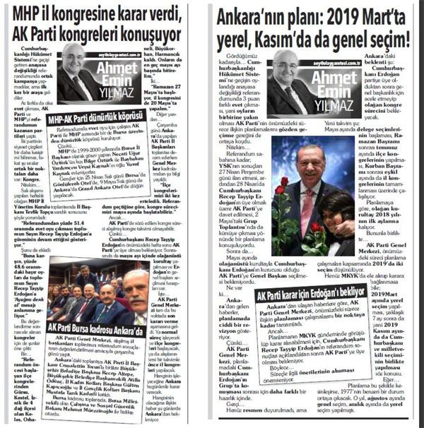 Önce Gürsu, Kestel, İznik, Keles, Orhaneli, Büyükorhan, Harmancık kongrelerinin mayıs başında hızla tamamlanacağını, sonra da 20 Mayıs’ta il kongresinin yapılacağını 21 Nisan günü bu sütunlardan aktardık.