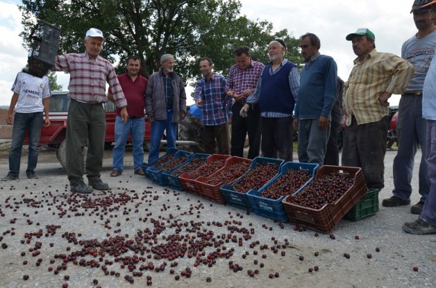 Yıllardır ihracatta paylaşılamayan kirazlar şimdi ihracat durduğu için fiyat düşüren tüccara tepki olarak ya dalında kurumaya terk ediliyor, ya da haberde olduğu gibi yollara dökülüyor.