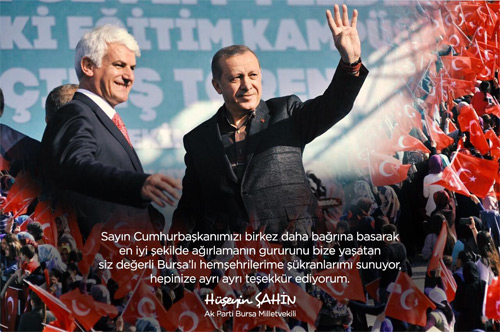 En farklı teşekkür mesajı sosyal medya paylaşımıyla AK Parti Bursa Milletvekili, TBMM Milli Savunma Komisyonu Başkanvekili ve AK Parti Ekonomik İşler Başkan Yardımcısı Hüseyin Şahin’den geldi.