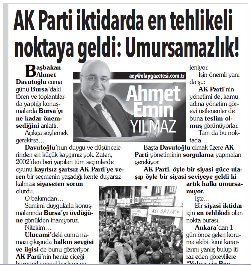 İstanbul’daki bir gazetenin yöneticisi, Bursa’da muhabbet ettiği arkadaşını aday listesine Başbakan’a söyleyiverme ile bu kadar kolay yazdıramazdı.