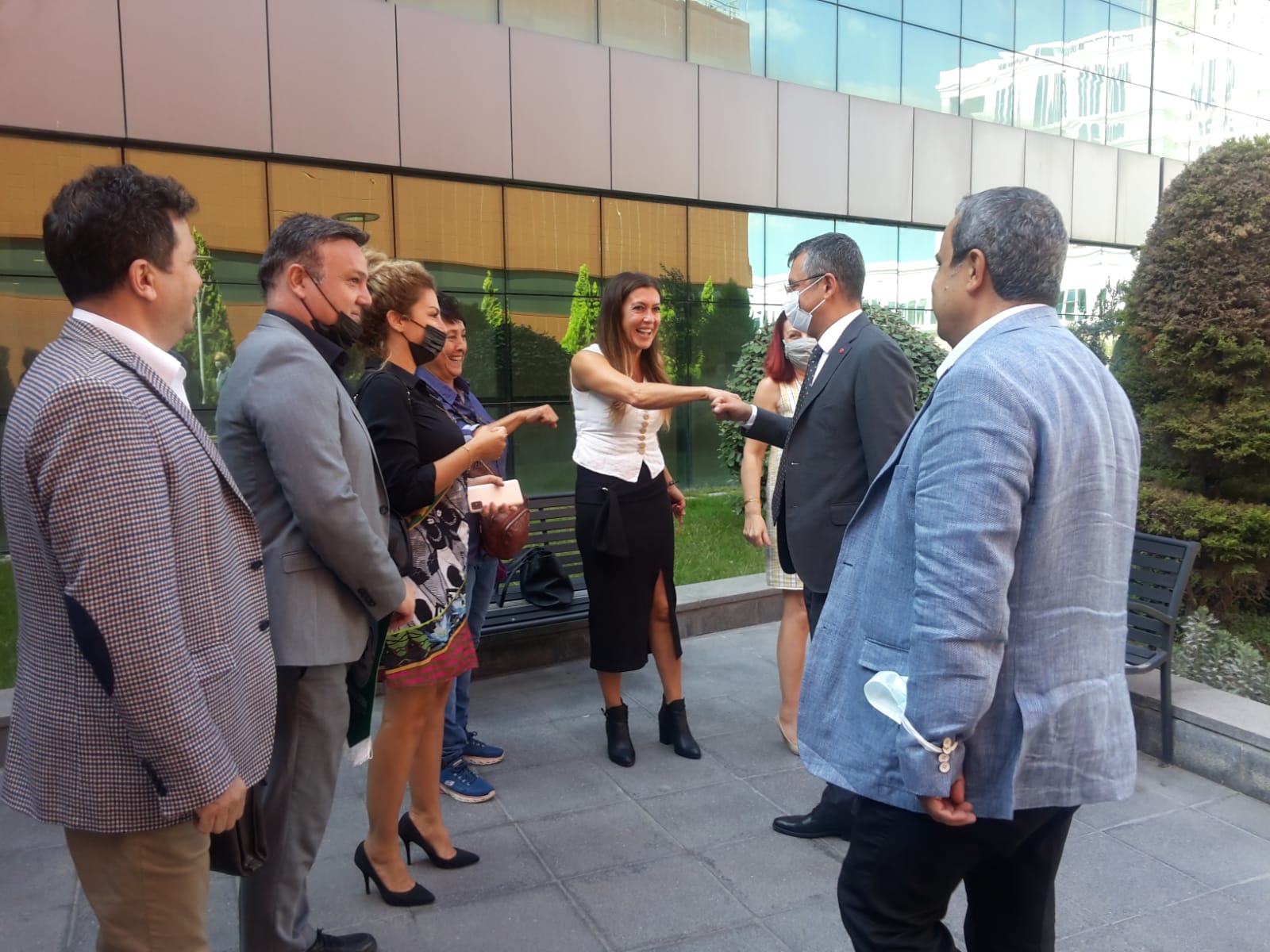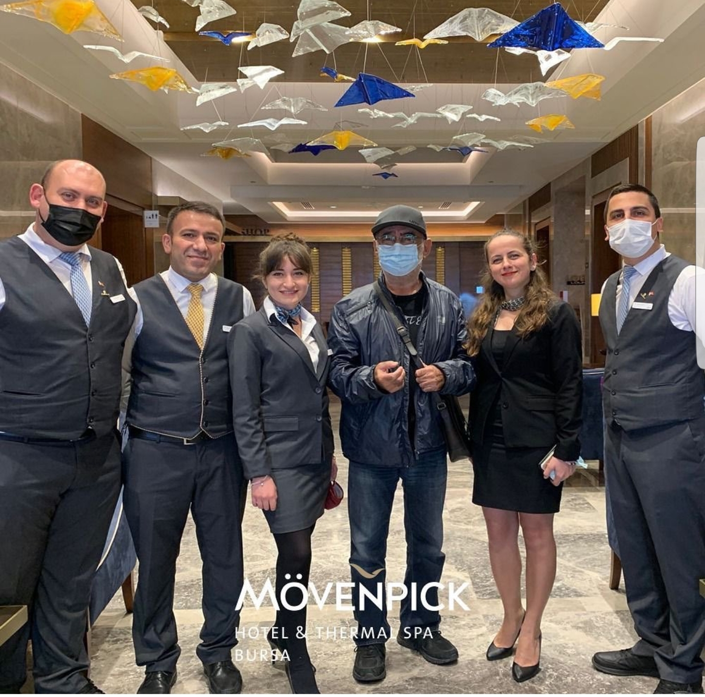 Konakladığı Çekirge Caddesi’ndeki Movenpick Oteli’nin çalışanlarıyla çektirdiği fotoğrafta mutluluğunu yansıtarak gösterdi.