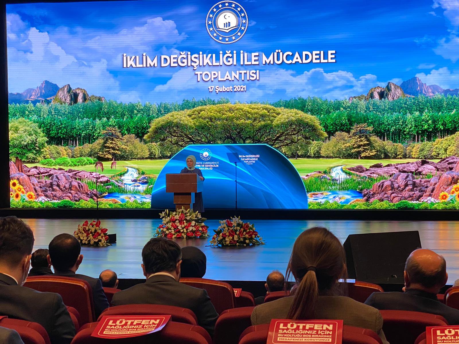 Cumhurbaşkanı Recep Tayyip Erdoğan’ın eşi Emine Erdoğan’ın himayesinde yapılan, Çevre ve Şehircilik Bakanı Murat Kurum’un yönettiği çalıştayda görüşlerini paylaştı, sonuç bildirgesi açıklamasına katıldı.