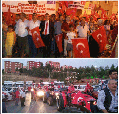Osmangazi Yörük-Manav-Türkmen Dernekleri Birliği ile Kestel Koop tarafından ortaklaşa organize edilen demokrasi konvoyu ve yürüyüşü önceki gece çok ilginç görüntüler ortaya çıkardı.