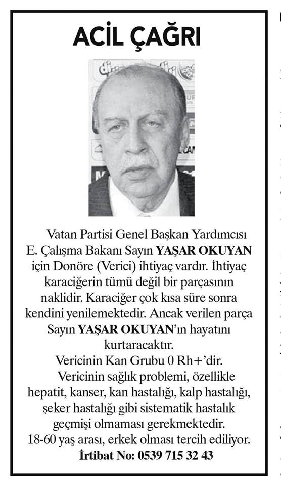 Yaşar Okuyan nakil için karaciğer arıyor