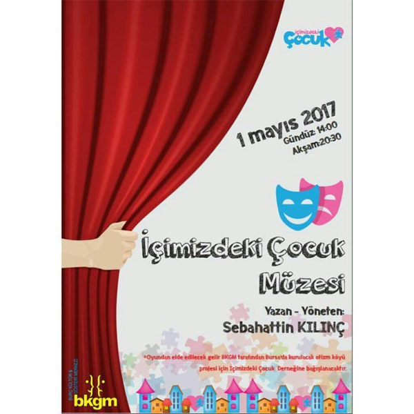 İçimizdeki Çocuk Derneği organizasyonuyla yarın Merinos Atatürk Kongre Kültür Merkezi’nde gündüz saat 14.00, akşam da saat 20.30’da olmak üzere 2 galayla İçimizdeki Çocuk Müzesi adlı oyun sahnelenecek.