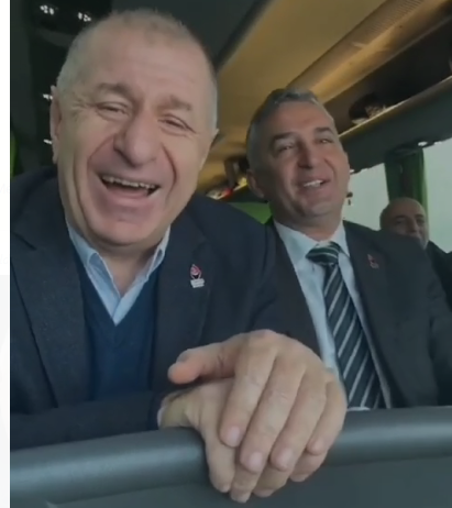 Seçim otobüsünde, yanında oturan Bursa kurucularından ve Zafer Partisi Genel Başkan Yardımcısı olan Bayram Kazancı’yı işaret edip şunu söyledi: