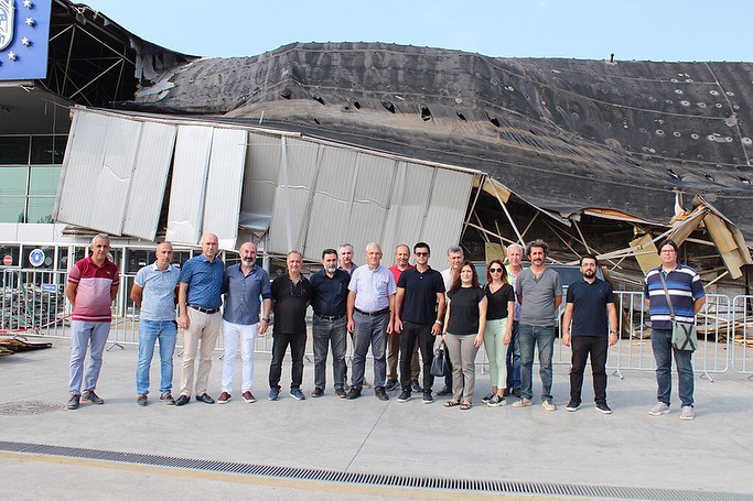 Yönetimiyle Karayolları 14. Bölge Müdürü Umut Akyazı’yı ziyaret edip yol projeleriyle ilgili bilgi alan Küçükkayalar, çarşamba günü “aşırı yağışta giderler tıkandığı için göllenme nedeniyle” çöken Terminal çatısını inceledi.