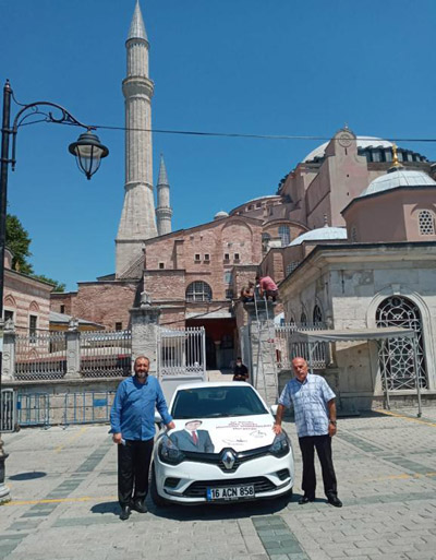 Ayasofya önünde, Dündar posterli otomobilin başında da hatıra pozu verdiler.