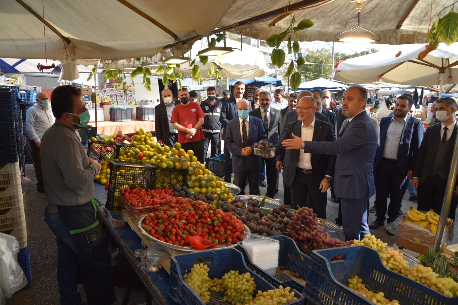 AK Parti İl Başkanı Davut Gürkan ve Büyükşehir Belediye Başkanı Alinur Aktaş birlikte Alemdar Semt Pazarı’na çıkmışlar. Pazarcılar ve vatandaşla konuşup, pazarın nabzını tutmuşlar.