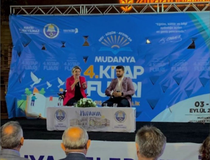 Mudanya Kitap Fuarı kapsamında düzenlenen söyleşilerden birinde ilgimizi çeken bir görüntü oldu.