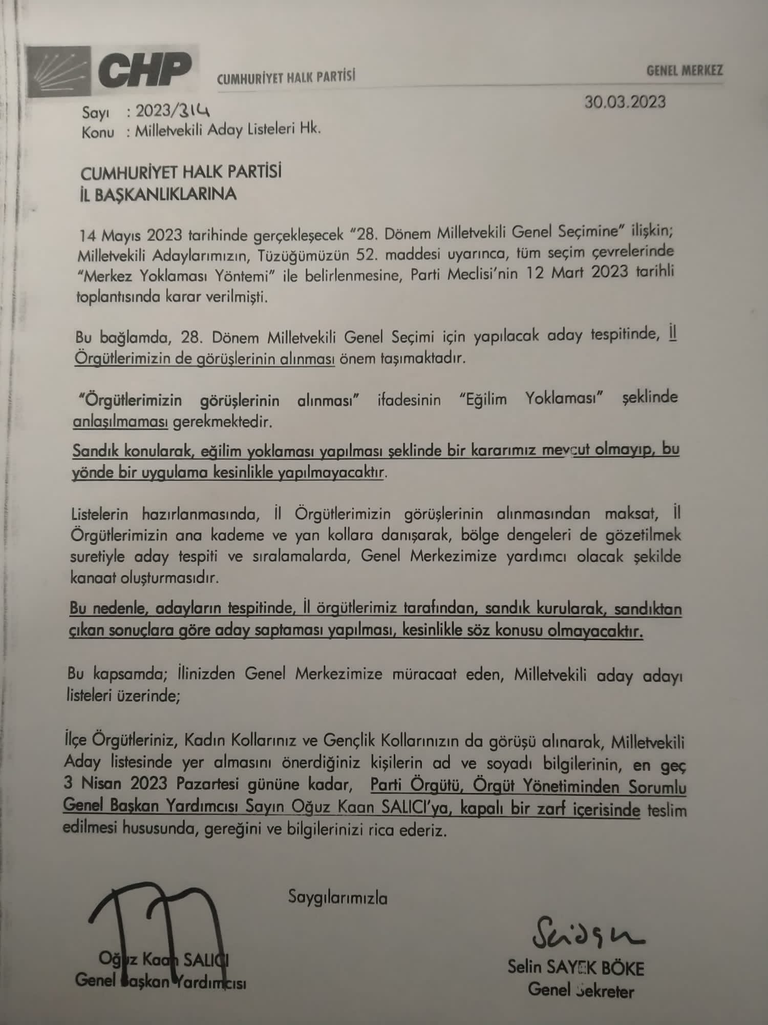 “İl örgütleri; ilçe örgütleri, kadın ve gençlik kolları görüşlerini alıp önerileri 3 Nisan’a kadar bildirecekler.”