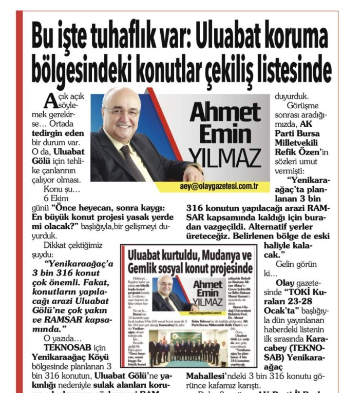 Sosyal konutlarda kura çekimini duyuran listede Yenikaraağaç’ı görmenin şaşkınlığını cumartesi günü “Bu işte tuhaflık var: Uluabat koruma bölgesindeki konutlar çekiliş listesinde” başlıklı yazımızla paylaştık.