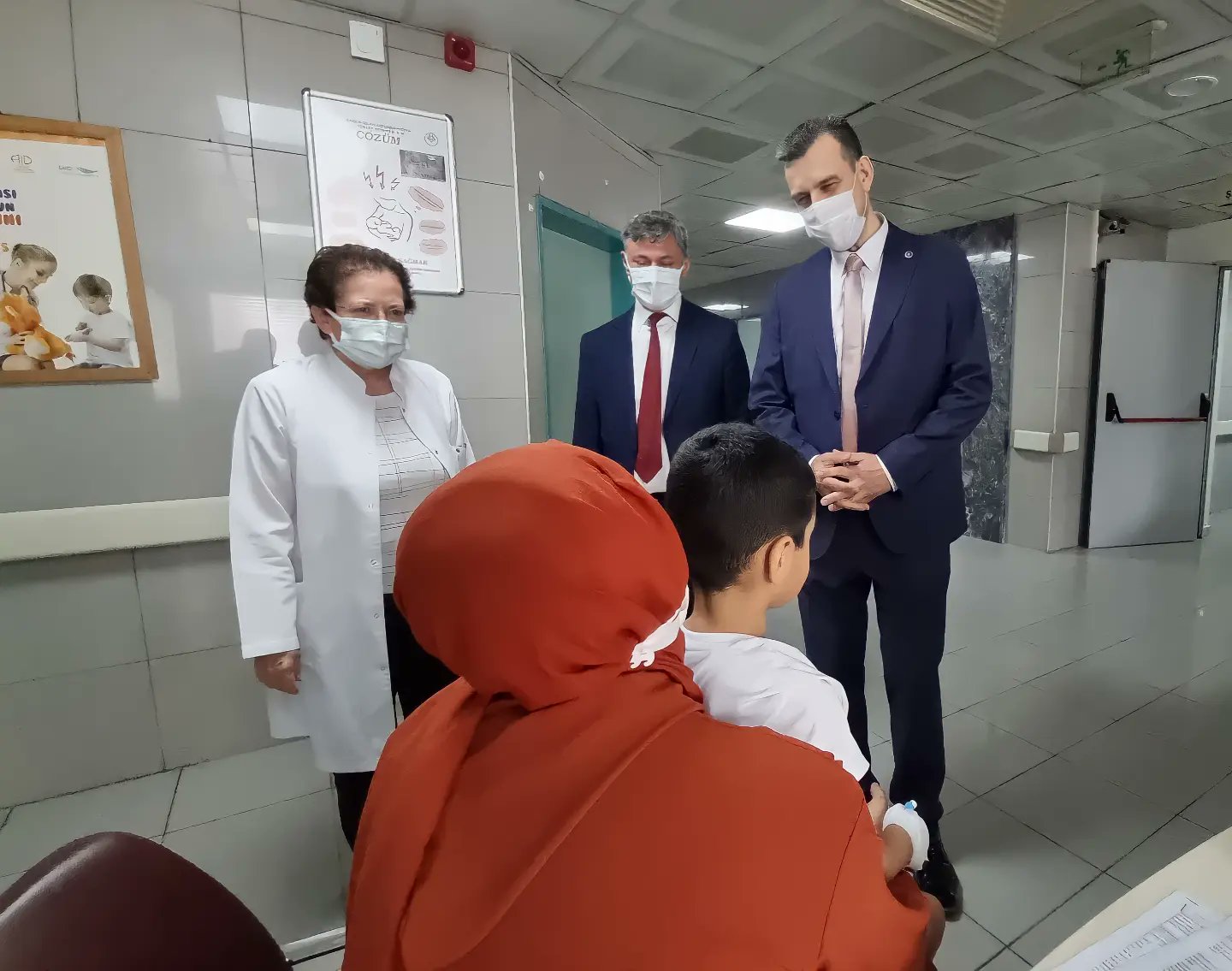 AK Parti Bursa Milletvekili Dr. Mustafa Esgin 2 büyük hastane Şehir ve Yüksek İhtisas’ta çocuk hematoloji ile onkoloji hastalarını ziyaret edip doktorlarla görüştü, “Hastalarımız emin ellerde” mesajı yayınladı.