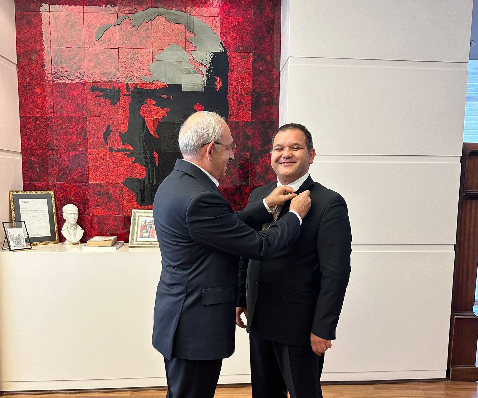 Alagöz ve Kılıçdaroğlu ikinci kez bir araya geldiler. “CHP’de siyaset yapmaktan onur duyarım” diyen Alagöz’ün rozetini de Kılıçdaroğlu taktı.