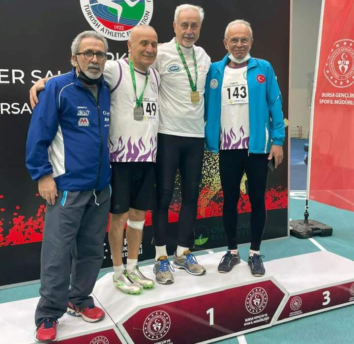 Dr. Murat Kaçar yıllardan beri veteran atlet olarak masterler yarışlarına katılıyor ve dünyanın her yerinde koşuyor. En son, Osmangazei Atletizm Salonu’nda 75 yaş kategorisinde pistte rüzgar gibi esti, üç birincilik birden elde etti.