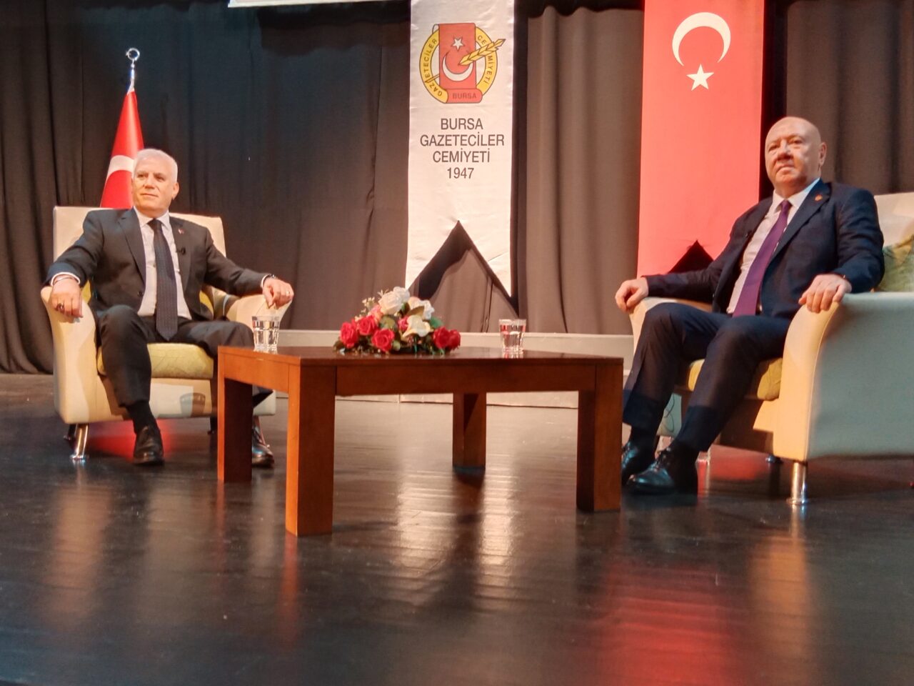 Bursa Gazeteciler Cemiyeti’ni ziyaretinde, Başkanlarla Yüz Yüze programı konuğu da oldu. BGC Başkanı Nuri Kolaylı’nın moderatörlüğünü yaptığı ilk programda, yönetim kurulu olarak bizler de sorularımızı yönelttik.