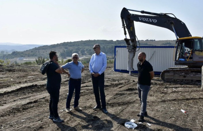 Sabah başlayan şantiye çalışmalarının ilk ziyaretçisi de Karacabey Belediye Başkanı Ali Özkan oldu.