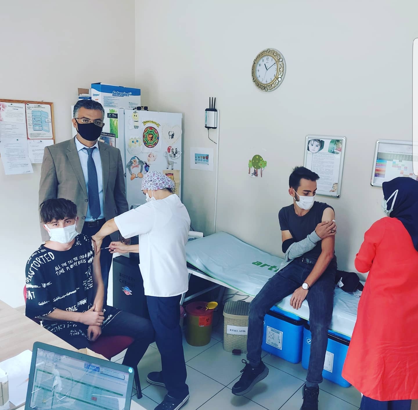 Yıldırım Mimar Sinan Lisesi öğrencileri Oğuzhan Akkaya ve Yusuf Tekin kendilerini ve arkadaşlarını düşünüp 75. Yıl Aile Sağlığı Merkezi’nde aşı oldular.