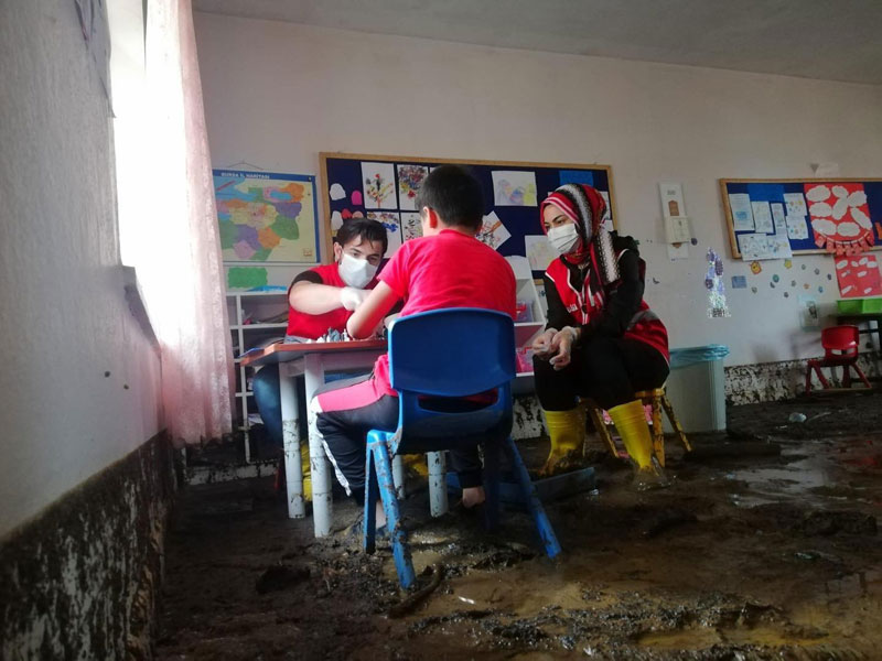 Dudaklı Köyü’nde yaşayan Cihat, selden okulunun etkilenip hasar görmesine çok üzüldü. Çamur kaplı sınıfta ağladığını gören Kızılay Gönüllüsü gençler de, teselli etmek adına yanına oturdular ve Cihat’la birlikte çeşitli oyunlar oynadılar.
