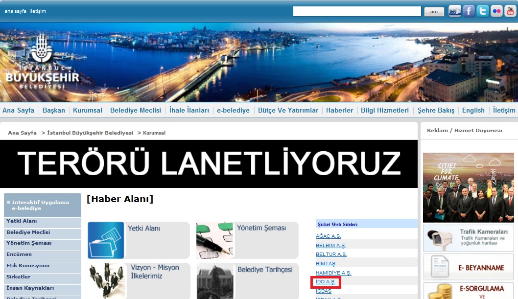 İstanbul Büyükşehir Belediyesi’nin internet sitesindeki İBB şirketleri arasında İDO A.Ş. de yer alıyor.