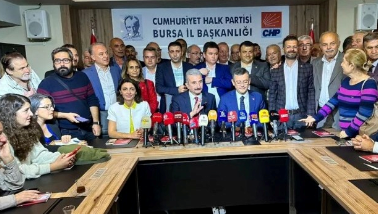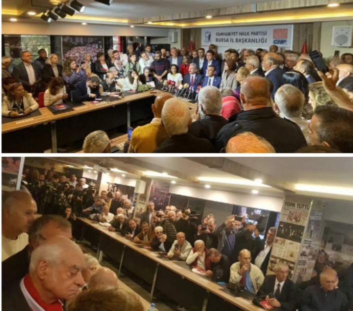 CHP Genel Başkan Adayı olarak Grup Başkanı Özgür Özel delegeler ve parti örgütüyle görüşmek için Bursa’ya geldi. Eşi Bursalı olan Özel için CHP İl Başkanlığı’ndaki toplantıda gidişatın fotoğrafı da ortaya çıktı.
