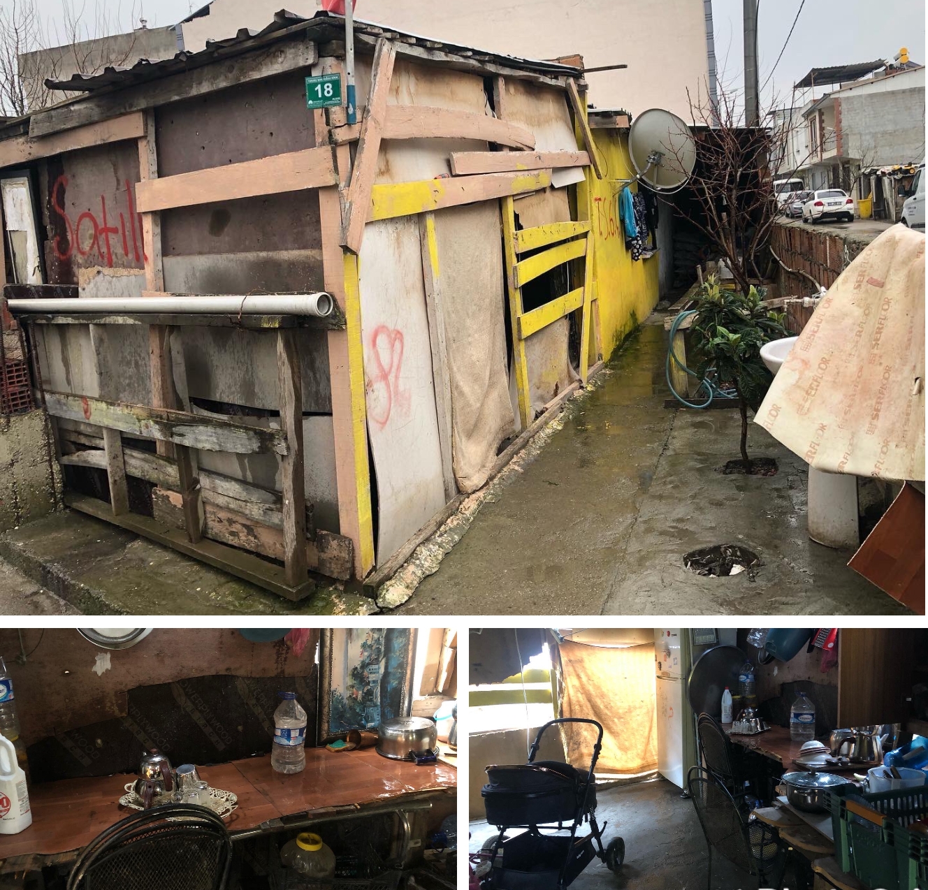 Bizzat gidip incelediği ve ev denilen derme çatma yapının çatısı bulunmadığını, üstteki kaplama sağlıklı olmadığı için içeri sürekli yağmur suyu damladığını söylüyor.