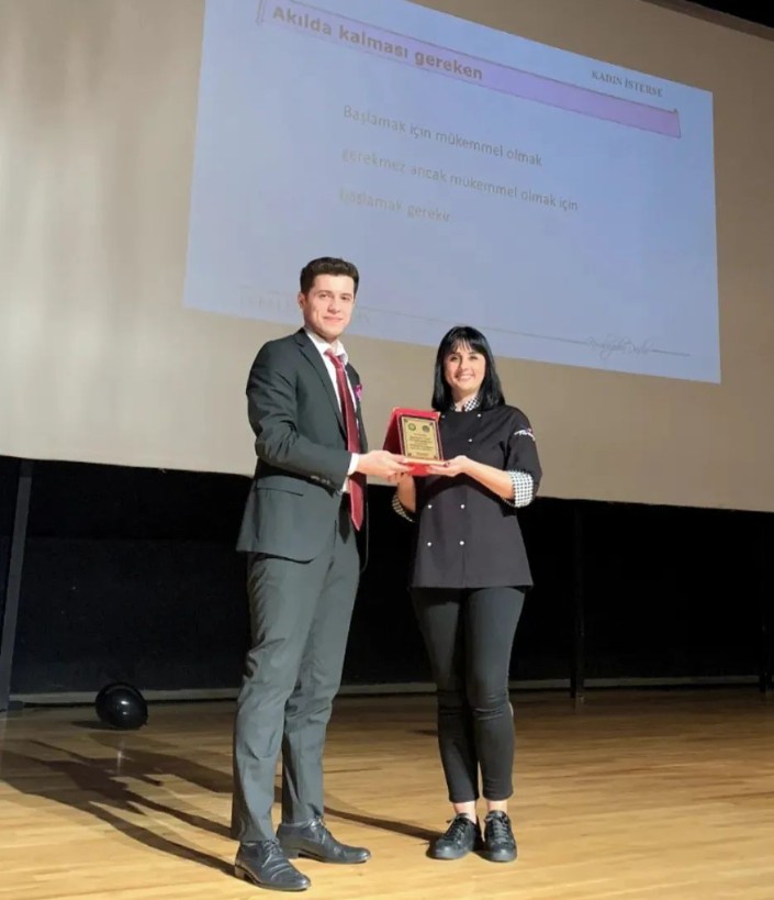 Yaşadığı tüm deneyimleri Bursa Uludağ Üniversitesi Endüstri Mühendisliği Topluluğu’nun organizasyonunda paylaşırken, üniversiteli gençlere ”kadın isterse neleri yapabileceğini” anlatmış oldu.