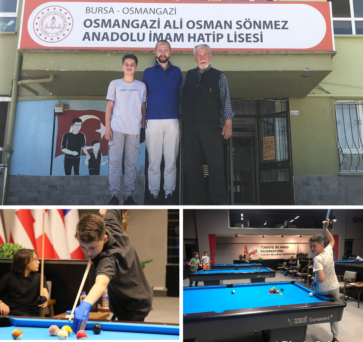 Omangazi Ali Osman Sönmez Anadolu İmam Hatip Lisesi öğrencisi olan Eymen Şengül şeftali bahçeleri arasından çıktı ve önce bilardoda Bursa birincisi oldu, sonra da Ankara’da yapılan ve ilk kez katıldığı Türkiye Şampiyonası’nda Türkiye dördüncülüğüne ulaştı.