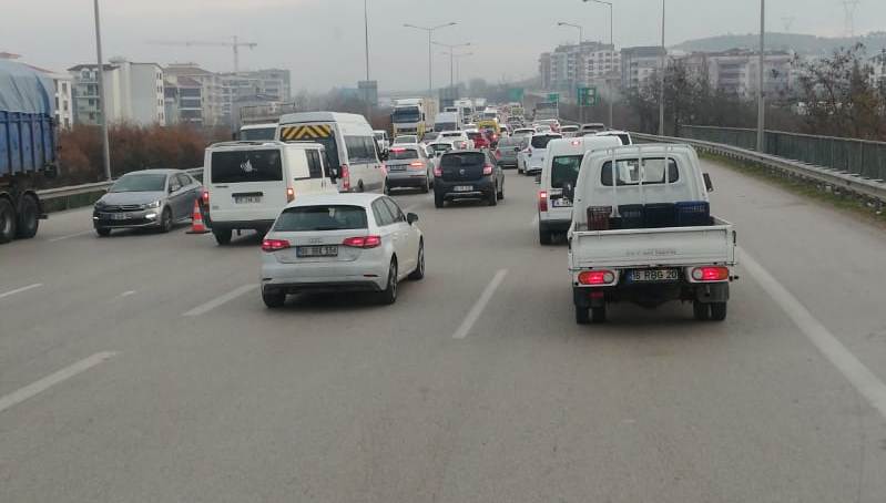Sabah… Mudanya Yolu’ndan gelirken Bursa OSB önünde trafik tıkandı. Fatih Sultan Mehmet Bulvarı’na girecek araçların kuyruğu da Ata Bulvarı’na kadar uzamıştı.