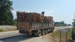 Kasayı aşan tomruk yükü için kamyonda hiçbir önlem yok. Yani, tam anlamıyla Allah’a emanet bir yolculuk söz konusu.