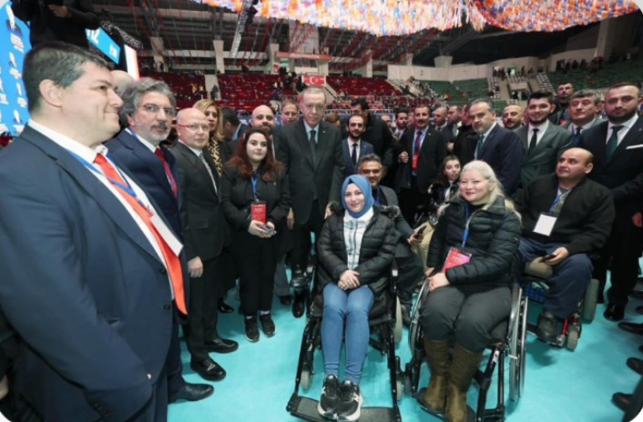 Tekerlekli sandalyeyle salona gelen engelliler için AK Parti İl Başkanı Davut Gürkan tarafından A Protokolü bölümünde yer ayrıldı. Cumhurbaşkanı Recep Tayyip Erdoğan da yanlarına gidince engelliler büyük bir sevinç yaşadılar.
