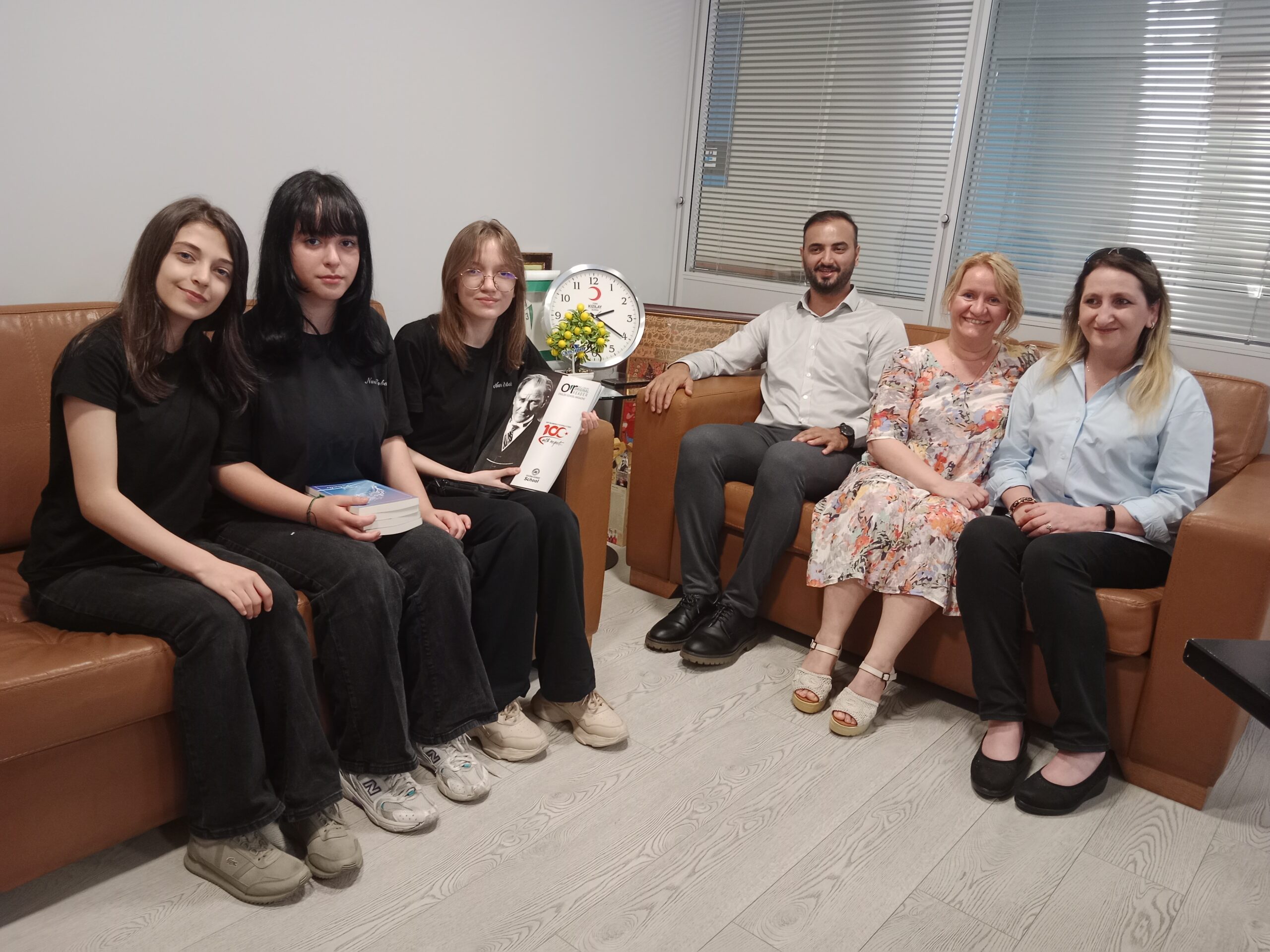 İngilizce Öğretmeni Sermin Ürkmez Türkkan, Okul Aile Birliği Onursal Başkanı Hülya Yağız ve 8. sınıf öğrencileri Nazlıcan Doğan, Aysu Kaya, Öykü Sonay Türkkan’la ziyarete geldiğinde kitap ve dergi bıraktı.