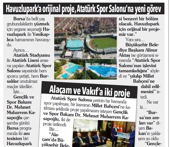 Gençlik ve Spor Bakanı Dr. Mehmet Muharrem Kasapoğlu’nun geçen ay Bursa ziyaretinde gündeme gelen iki önemli proje var.