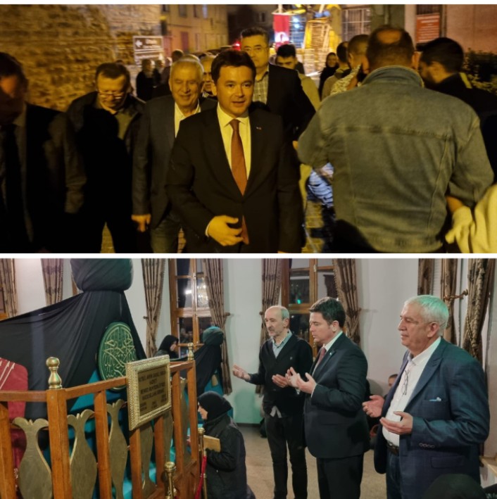 Kadir Gecesi’nde Üftade Hazretleri türbesinde dua eden Erkan Aydın yoğun ilgiyle karşılaştı, herkesle tek tek anı fotoğrafı çektirdi.