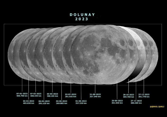 2023’ün ilk iki ayında dünyaya 405 bin 830 kilometre uzakta gerçekleşen dolunayla, ağustos ayında 357 bin 340 metrede gerçekleşen dolunay ve yine ağustosta Süper Mavi Ay olarak gerçekleşen dolunay dikkat çekiyor. 28 Ekim’de de parçalı ay tutulması gerçekleşti.