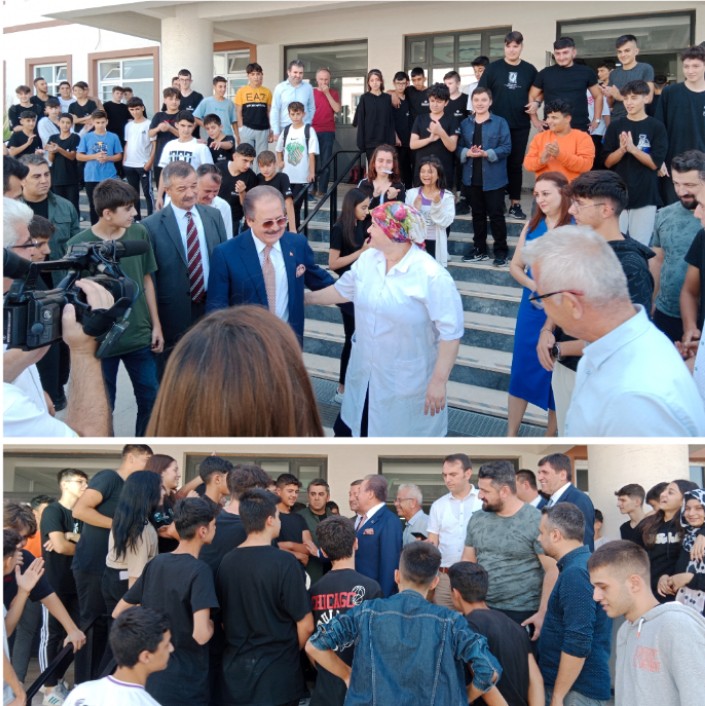 Cavit Çağlar da okula girişinde ve çıkışında öğrencilerle sohbet etti.