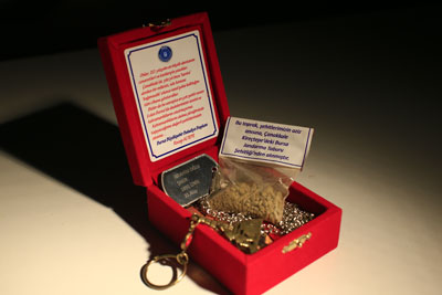 “Her şehidimizin adına olmak üzere 4 bin 500 künye hazırladık. Çanakkale’deki Bursa şehitliğinden gelen toprağı da küçük poşetlere koyduk. Tüm şehitlerin adlarının yer aldığı küçük bir kitapçık hazırladık.”