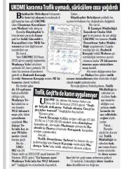 “… 24.04.2015 tarih itibarı ile bahse konu UKOME Kurul kararı alınmış ise de Trafik Şube Müdürlüğümüze PTT yolu ile 08.06.2015 tarih itibarı ile gelmiş ve aynı tarihte tüm görevlilerimize tebliğ edilmek suretiyle uygulamaya geçilmiştir.”