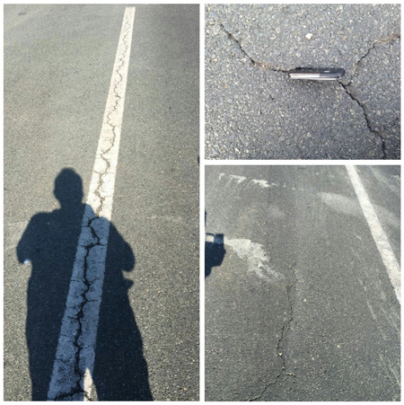 Araçla geçilirken pek fark edilmiyor, ama yol üstündeki kimi çatlaklar cep telefonu girecek derinliğe ulaştı.